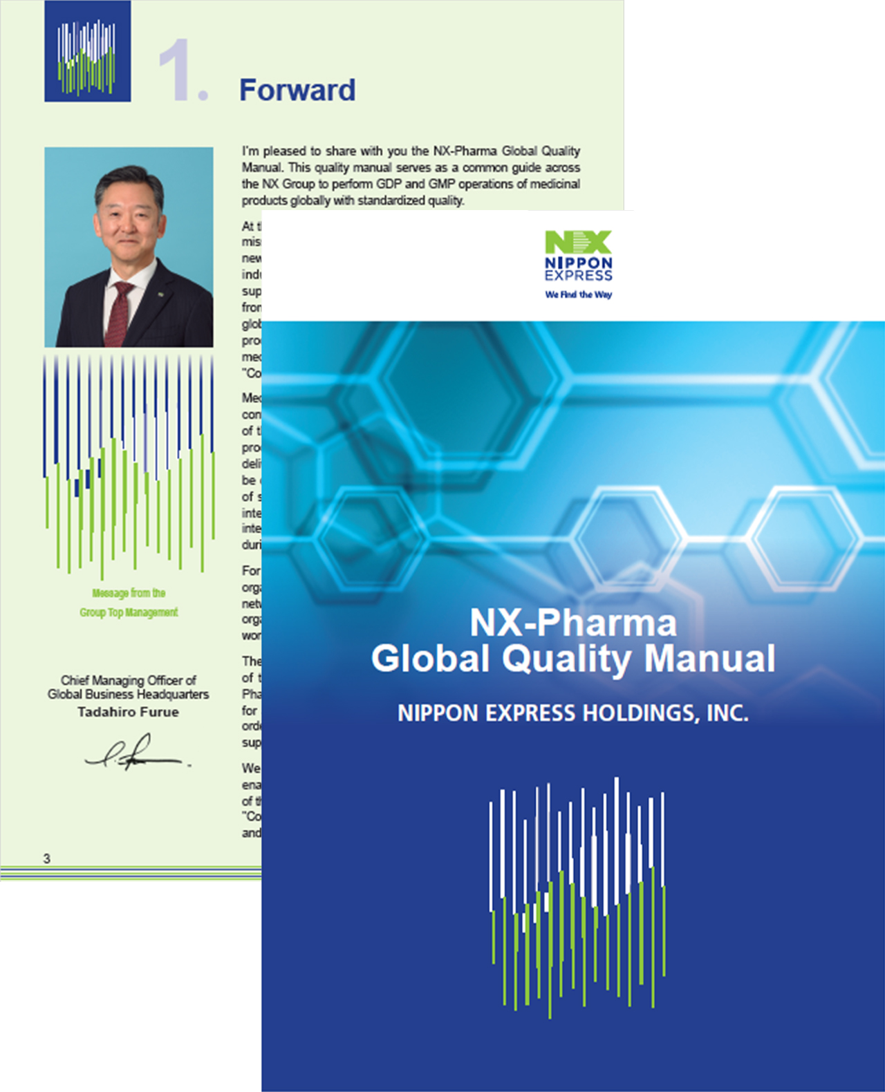 To provide high-quality pharmaceutical logistics services to customers in the pharmaceutical industry, the NX Group has been working to establish a globally unified and standardized quality management system, and has recently compiled the NX-Pharma Global Quality Manual.